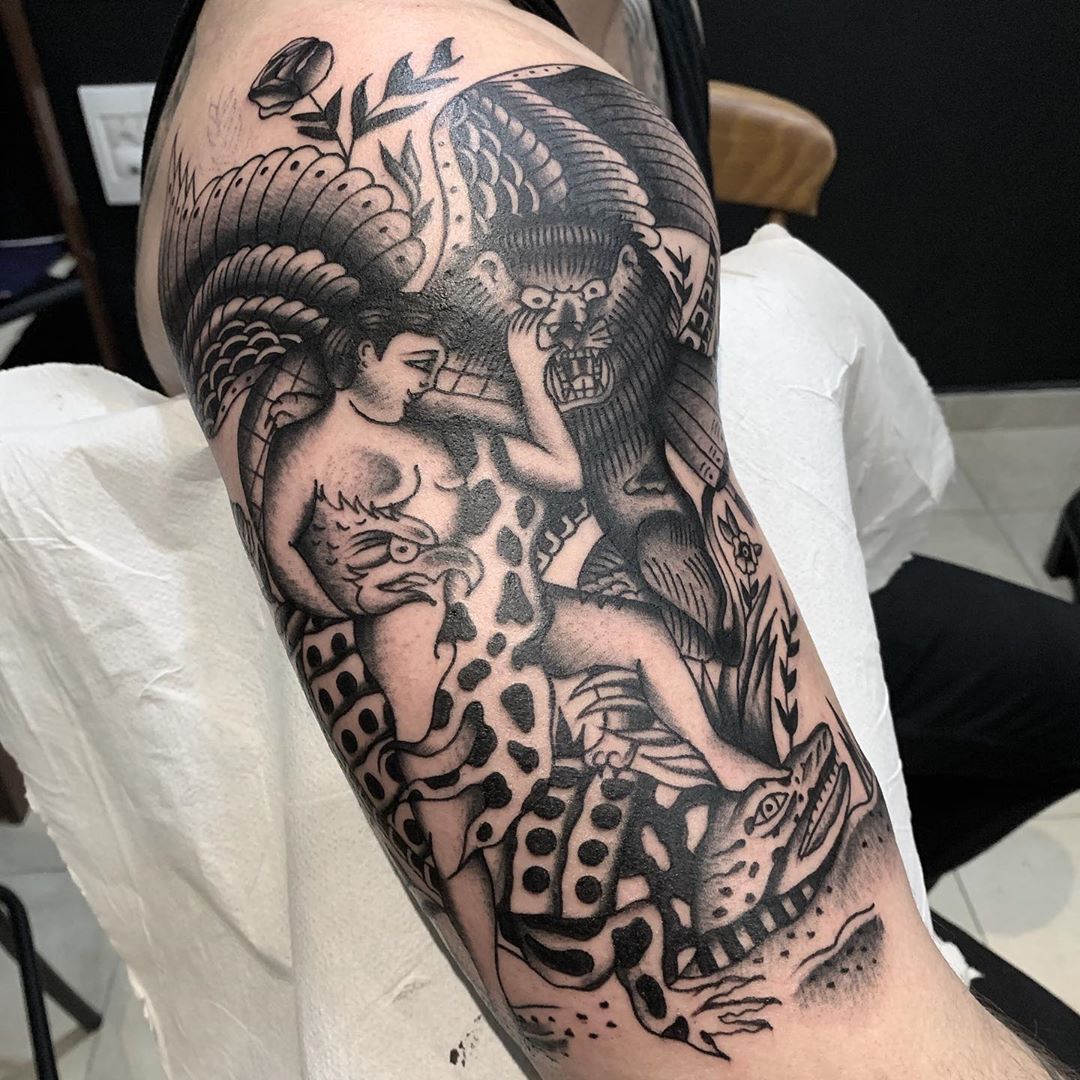 Life at sea proved to not be for George, so he left the navy while on leave in Israel, and set up his first shop in Jerusalem. This only lasted a short time as he feared being caught by authorities for deserting the navy. This led to him boarding a Spanish merchant ship. He was able to avoid persecution for twelve years, but missed England. It was at this point that he dropped the “Davis” in his last name to make it harder to catch him, and set up shop in London, but this time as a cobbler. Though he did continue to tattoo on the side whenever the opportunity arose. During this time he was fortunate enough to meet two other legendary artists, Tom Riley and Sutherland MacDonald. MacDonald took George under his wing and taught him more about techniques and designs of tattooing.