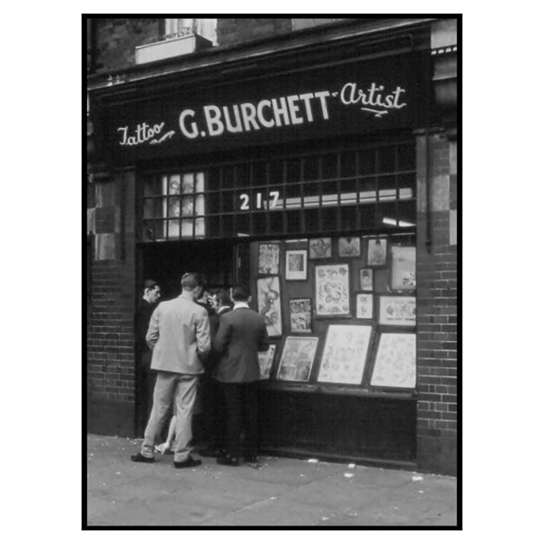 Burchett was born in Brighton in 1872, and had a very early introduction to tattooing. He practiced tattooing on his five year old brother, Charles, who apparently traded candy for some scratched designs in his skin. George also tattooed his classmates until he was expelled for doing so at the age of twelve.