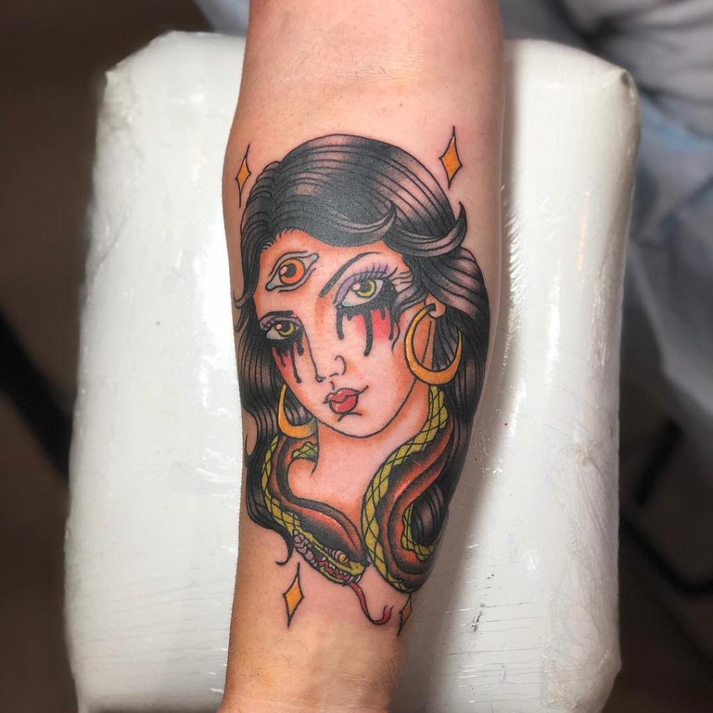 For many people, Medusa is a relatable character, so it’s no surprise that when you search for snake lady tattoos, she’s going to be one of the first examples you see. Medusa was wronged by someone more powerful than her, but was then given the power in the form of a curse to keep people from hurting her (unless you’re Perseus). Medusa tattoos can be seen as a kind of armour, as Medusa turned people to stone with her gaze. If you rock a Medusa tattoo, she can handle glaring at that weirdo on the bus for you.