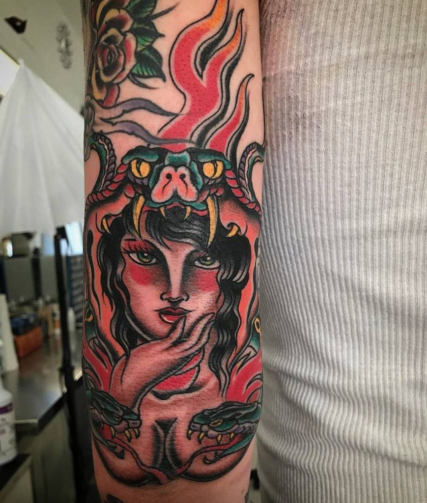 While these snake ladies might seem like monsters, they’re really just women wronged by men, and stories of feminist power. So guys, don’t be assholes! And when in doubt, get yourself a snake lady tattoo. They look badass, and they might just protect you from unwanted advances if they’re scary enough.