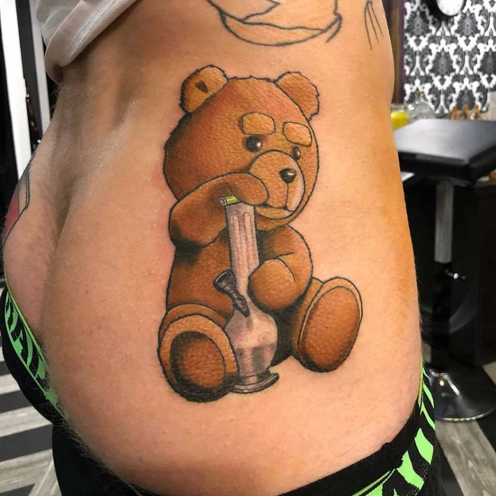 As a tattoo, cannabis is often done with cartoon characters smoking joints, depictions of bongs, or solo bud and flower. What’s your preferred method of using cannabis?