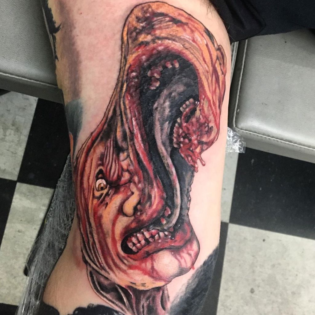 As a tattoo, various forms of metamorphosis are the most popular tattoos, particularly that creepy head. Fans of Kurt Russell have also immortalized his character. Realistic or old school styles also seem to be the most popular for those who want to have The Thing on them forever.