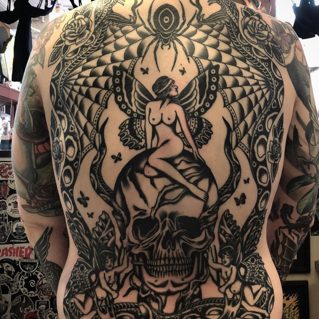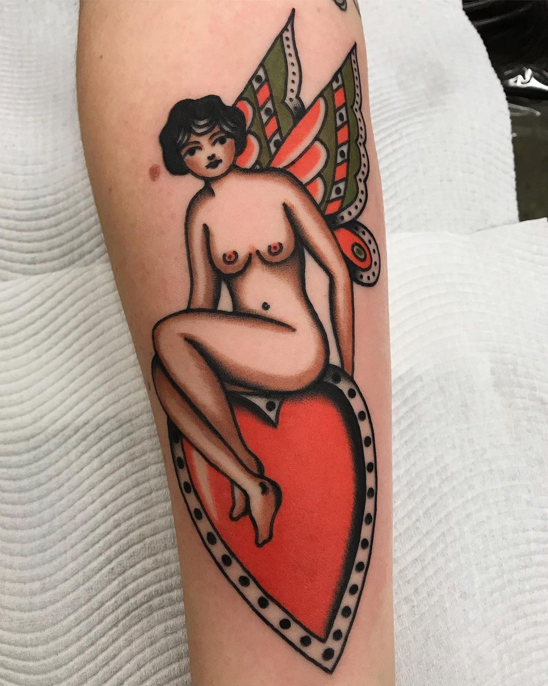 Combining classic old school portraits of ladies and the wings of butterflies has long been a staple in old school tattooing. Flash from such legends as Bert Grimm, Ben Corday, and others from the 1800’s and 1900’s featured variations of the designs below, and more.