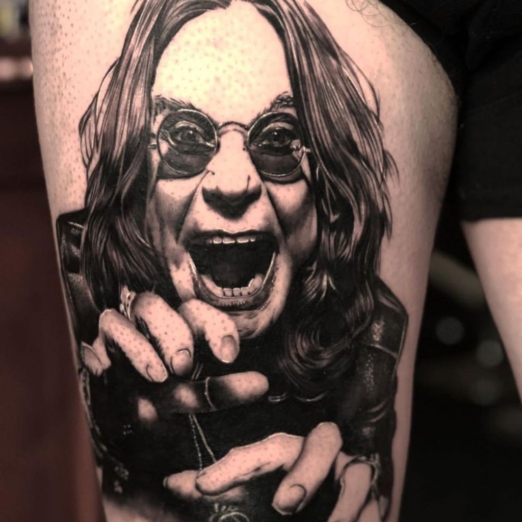 Some popular Black Sabbath tattoos include portraits of the band members (mostly Ozzy), album art, crosses, and “Henry” the bands devilish logo. Mostly done in black and grey, black work, or old school styles. Though realism, neo-traditional, and pointillism also make for awesome pieces!