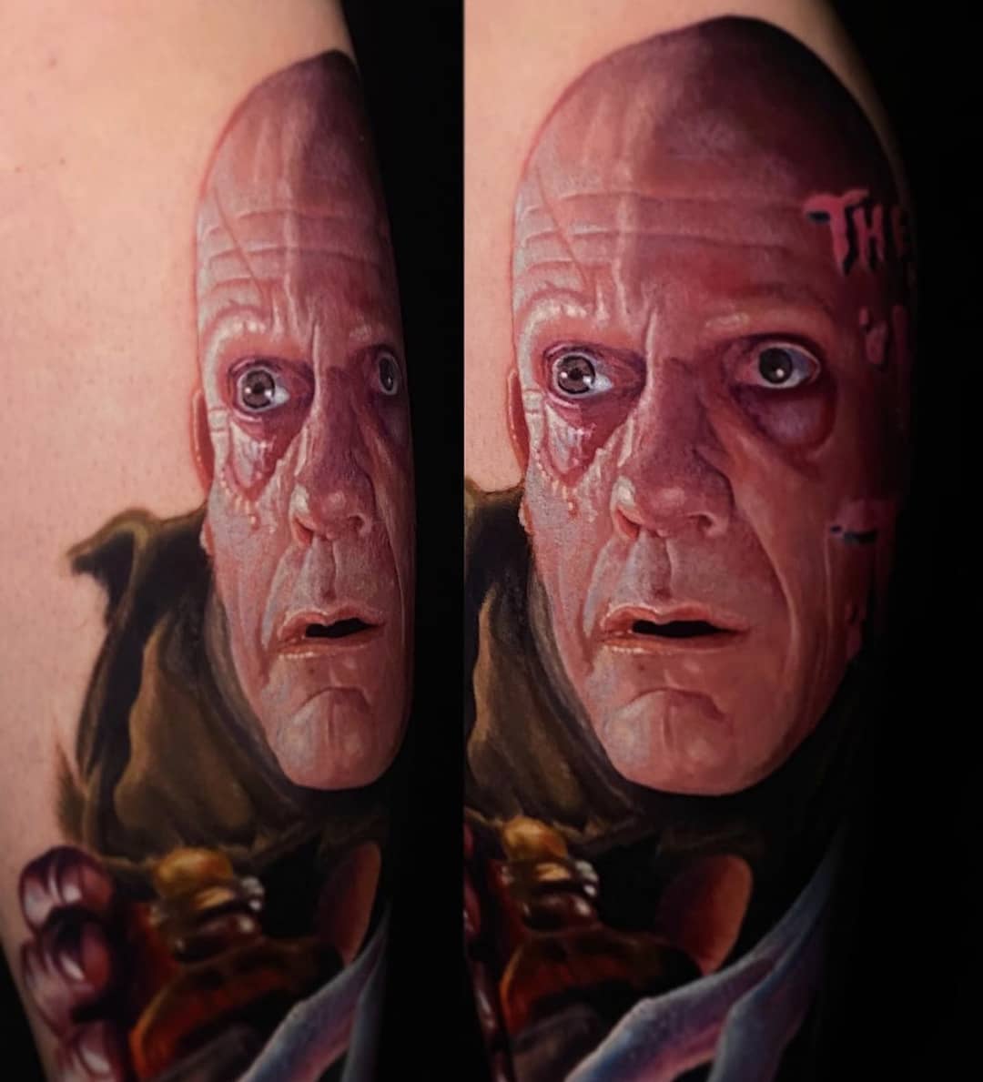 As tattoos, the character “Wednesday” is probably the most popular for fans, followed by Uncle Fester and Thing. Quotes and other characters also make for great tattoos. The most prevalent styles are black and grey, realism, and neo-traditional.