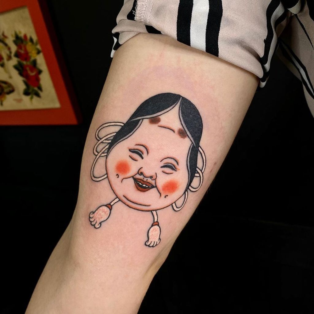 She is meant to bring happiness and enjoyment, and also embodies the ideal of feminine beauty. Okame is also often associated with geishas because of her playful nature and more silent and secondary role in theatre and folklore.