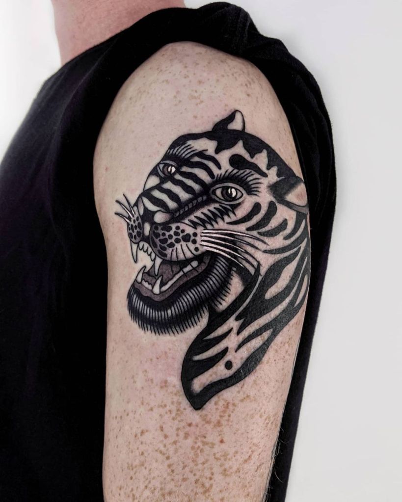Bert Grimm tiger by Darren Quinn at Sang Bleu Tattoo in London