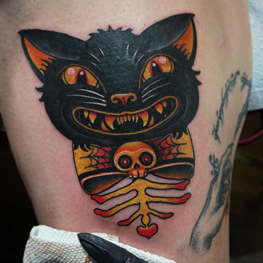 Alexandra’s main focus of work is cute neo-traditional and new school Halloween and horror themed pieces. While spooky themed work is what you’ll mainly see on her page, Alexandra is also known to do watercolour, black and grey, and some more realistic work.