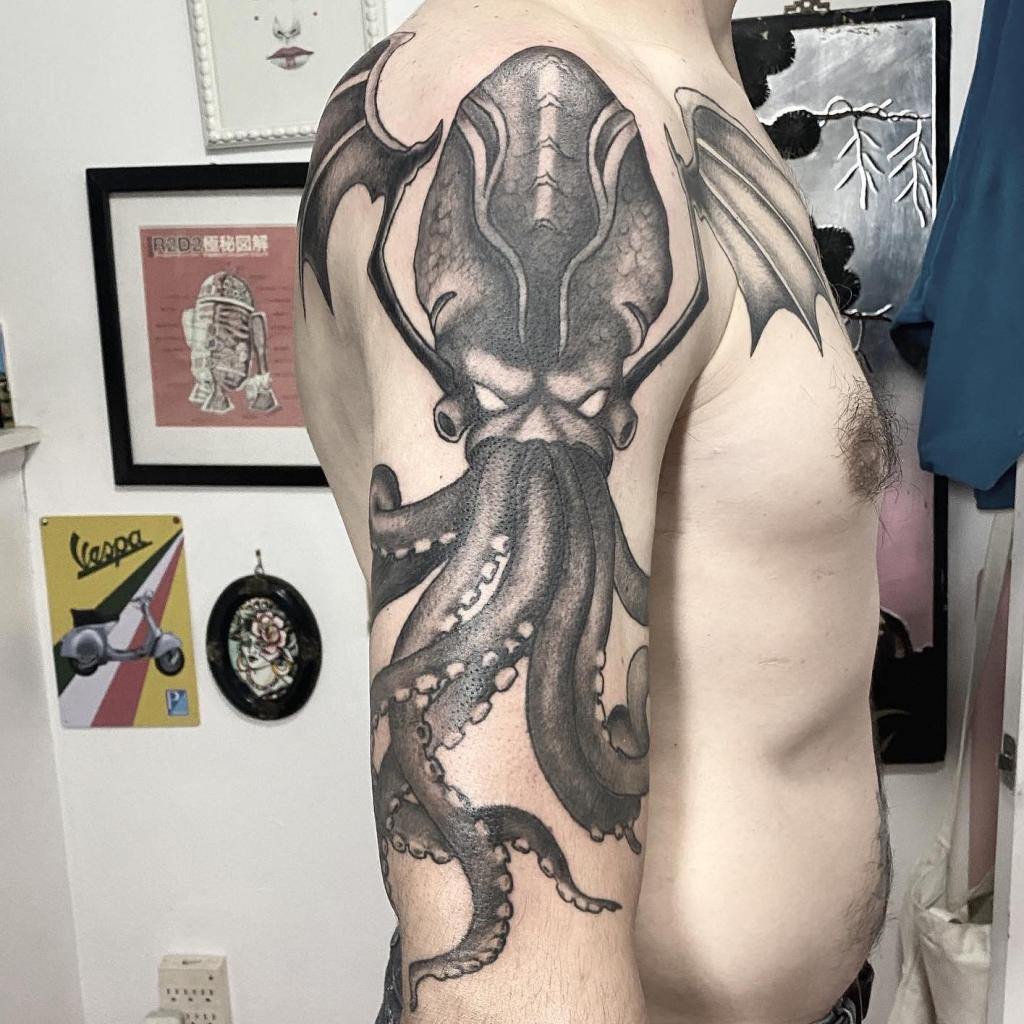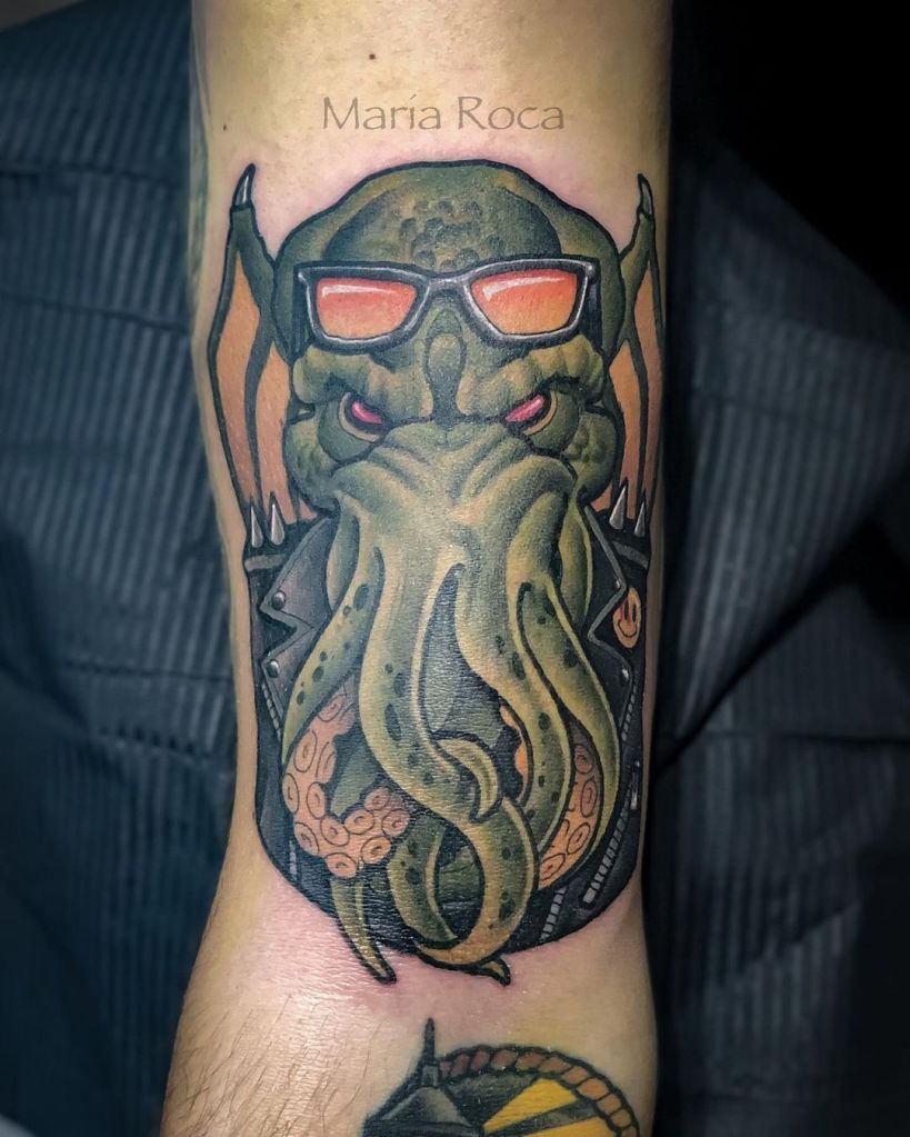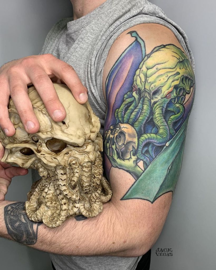 As a tattoo, many people choose to get Cthulhu in a more realistic style, although neo-traditional and new school are also popular. What is your favourite story featuring Cthulhu?