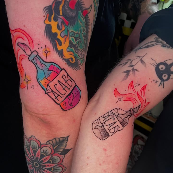 These anti-police tattoos can be done in pretty much any style but outside of script for ACAB or 1312 – the numerical equivalent – some styles we see a lot of are American traditional/old school, black and grey and new school.